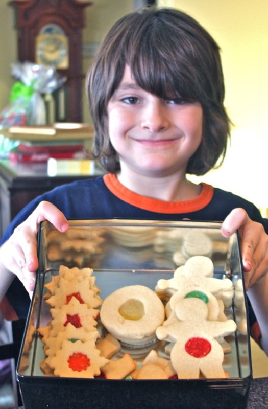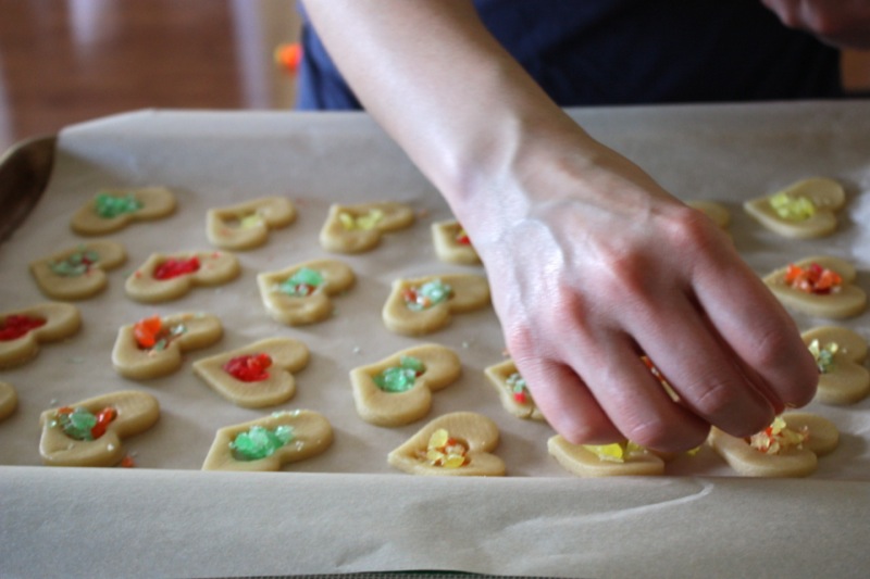 These children are much younger and also such fun! We made Gingerbread Cookies in 2012 and Candy Cane Cookies in 2011, but missed the stained glass Christmas of 2o12! Instead, we just finished making gorgeous heart shaped cookies together.This is a great family activity and these cookies make terrific gifts for any special holiday. Enjoy the photo essay. Recipe to follow.