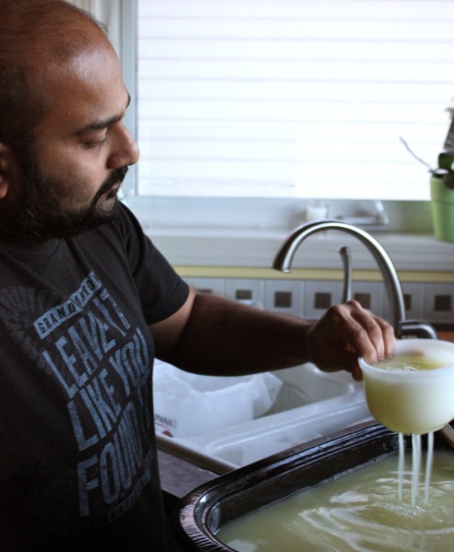 Every single time, when the curd goes into the mold and is pressed, the kitchen is a disaster and I am pooped. How did this happen?