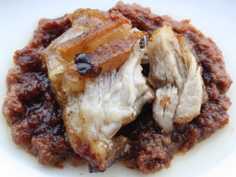 You already know. I have not been subtle. The apple sauce was deadly delicious. The flavour from the belly had permeated completely through the sauce and the tartness of the fruit partnered with the savoury crusty bottom of the pan was a knock-out hit. Yyyyy-uuuum-ers!