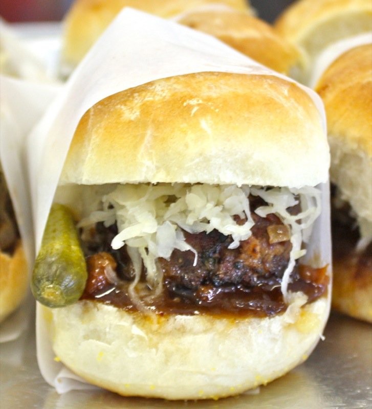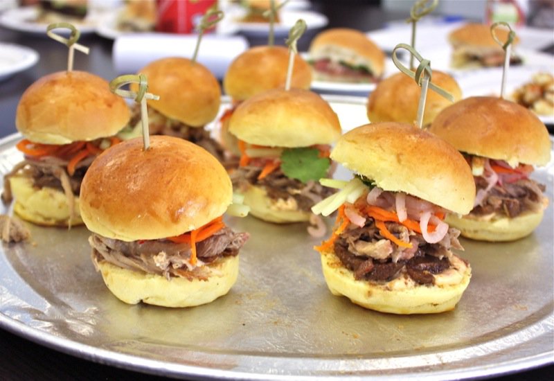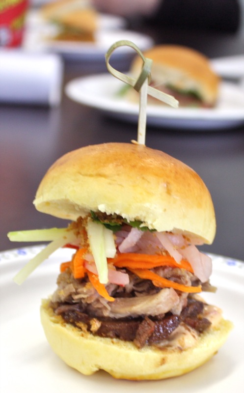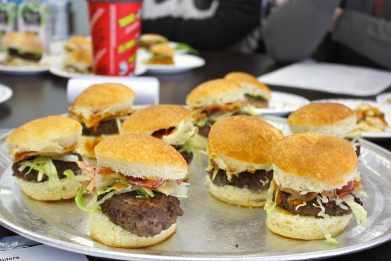We, the judges, munched our way through beefy bundles of mini-burger madness. Pork and salmon joined the party with mixin’s and fixin’s that tickled the tongue and had each of us in the judging room kickin’ up our heals and squeelin’ “yee-haw” every time we bit into another juicy slider saddled in a yeasty realm of sorts. Feast on each of the eight sliders we also met with our eyes first. We sniffed, nibbled, chomped and crunched lip smackin’ and finger lickin’ through the entire line-up. Napkin after napkin. Note upon note. Yums and hummms accompanied a chorus of guttural utterances at the onset of each debut. A glance around the room, yet our palates were not united. Articulating one’s evaluation of every concoction honoured the passion worked into each.