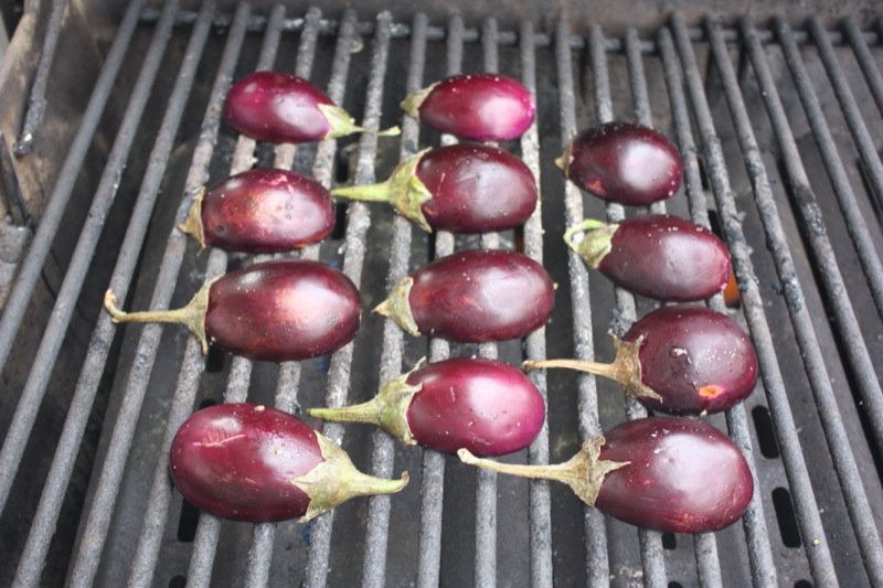 - Wipe off moisture accumulated on the surface of the eggplant, brush with oil, and grill on a hot surface (eggplant will lift when done)