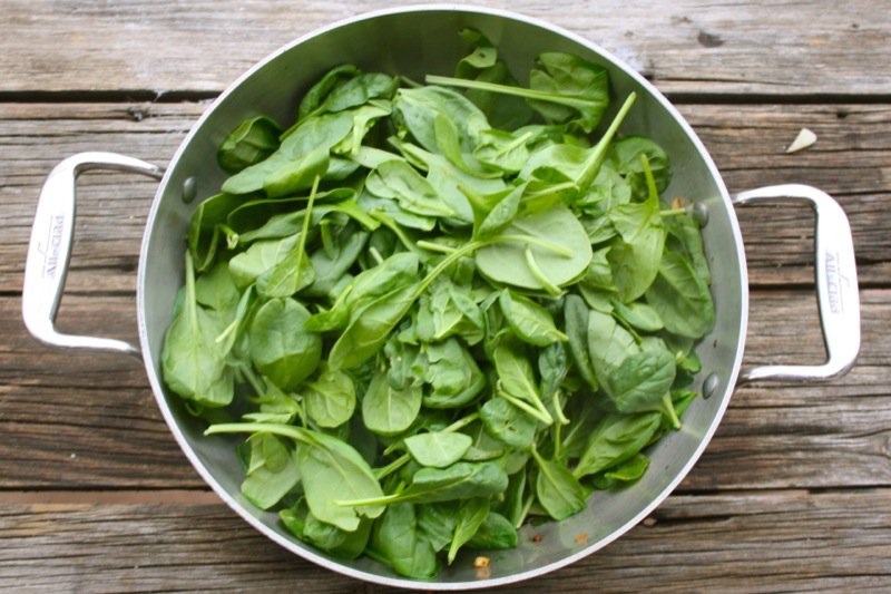 - 2 -3 cups or generous handfuls of fresh, tender spinach leaves