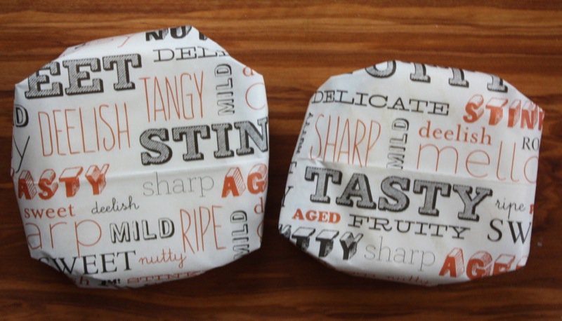 Apparently, if the brie ages without being wrapped, according to Anna Olsen (at Christmas in November 2011), the mold will grow into long bushy tendrils… but, there was no evidence of this that I could find. She and her husband started cheese making with brie, and decided that it was better to buy it after their forays with making it. Not my experience. I am in awe. Wrapping the cheese contains the growth of the mold, and it is important to turn each disc often. Both cheese discs sat on the lid.