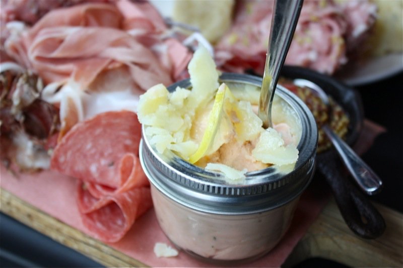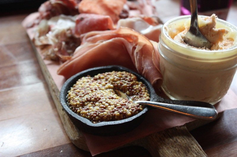 I meant to try the potted lake trout. The bee pollen rubbed and dry-cured bar sticks caught my eye, too. This is my kind of candy. Seriously, another must have if you stop by for a drink. And the Brassica grainy mustard made right in Calgary, served in the mini-cast iron pans is the perfect condiment to compliment the cured meats.