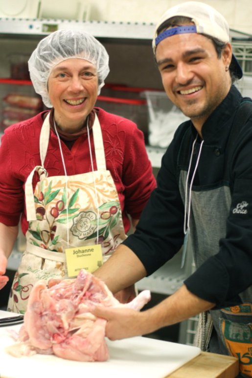 I heard excitement rise from murmur to a whispered mantra: Nevin, Nevin! I admit, this young man exudes as much warmth and charm as his food. Apparently, having Nevin teach how to butcher a chicken was a crowd pleaser! He and his wife, Kara, own Drift, Edmonton’s food truck with the largest cult following in the city. His class on chicken butchery was a huge hit. For many, this was the first time they had ever cut up a chicken.
