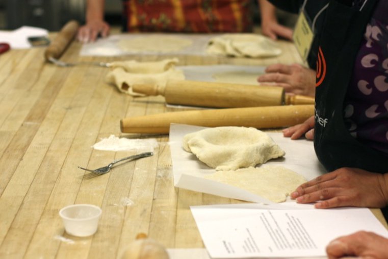 Pastry Chef Tracy Zizek, part owner of her well loved local restaurant, Cafe de Ville, taught Saskatoon pie making. Homemade pastry making is a dying art, yet such an integral skill from the past woven into our culinary prairie tapestry. She focused on the relearning of this skill and participants proudly displayed their aromatic baked wares on the way out the door at the end of the day. There is nothing more traditional in Alberta than a homemade Saskatoon berry pie.
