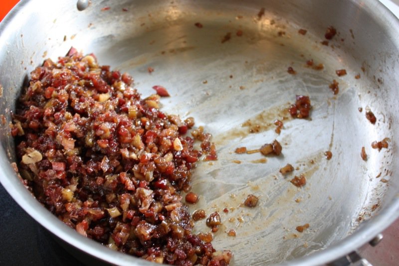 I am making only a half batch today; it is all I need and I only have half a pound of bacon.