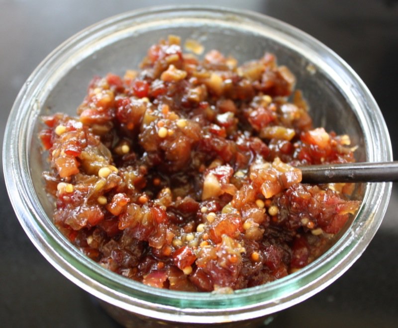 Woops! Forgot to add the gorgeous Brassica Grainy Mustard. I was almost afraid to, as the jam was so scrumptious without it… so, I started with one teaspoon and went with two. YUMMERS. The half batch made a generous amount of the jam.
