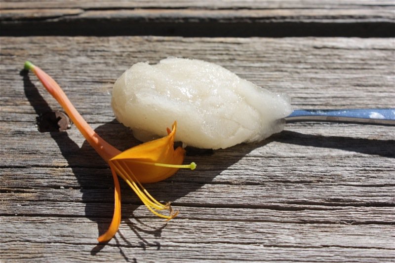 The addition of the crunchy hand-mined fleur de sel on the top elevates the taste over the top of any salted caramel ice cream bar! As well as the silken creamy texture, it held the freeze well. The addition of the salted caramel sauce was too decadent for words. No need for words when savoring this luxurious, velvet-sweet-salty-sumptuous reprieve amid a hot summer day. M-m-m-m-m…