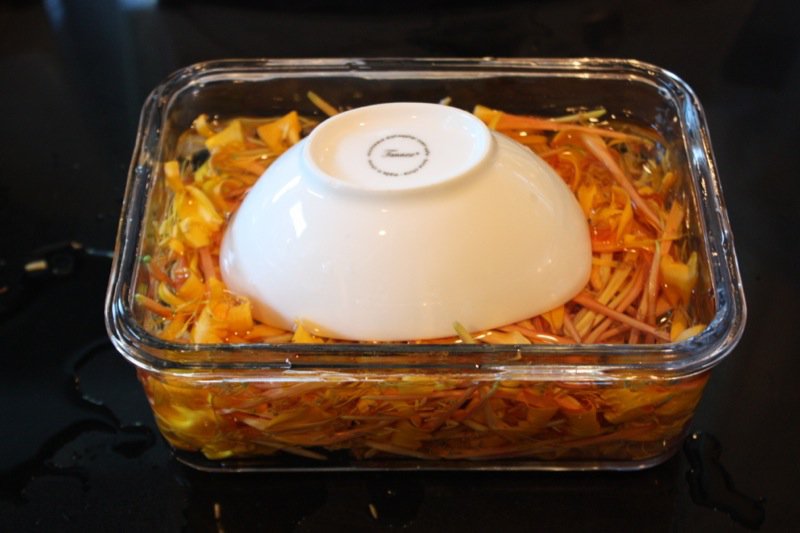 Pour into sterilized jar through funnel; seal and refrigerate until ready to use!