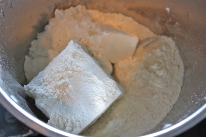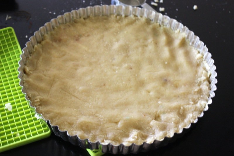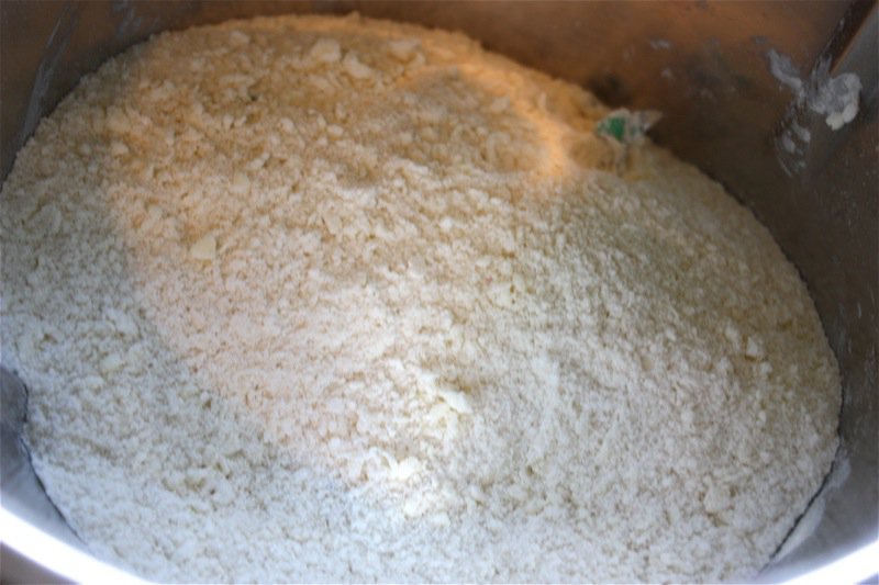 - Cut 1/2 cup butter into 1 cup flour mixed with 2 tbsp icing sugar