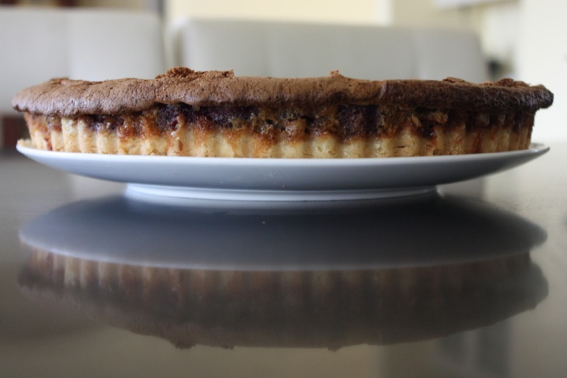 This is a dish that’s hard to mess up, and I did like my first outcome, however I am compelled to make these criticisms. 1.) Way too much butter in the crust recipe; after adding the filling to the baked crust, the oven began to smoke like Hades from the butter leaching out the bottom of my 2-piece tart pan. 2.) Did the recipe writer and the cook whose progress was photographed for this piece even know each other? The recipe calls for quartered cherries; photos clearly depict halves, which method I followed. The recipe calls for chopped walnuts: I see none in the photos. I broke the nuts by hand to yield larger, more uniform pieces, avoiding the bits that result from chopping. The recipe calls for a 9×9 or 9×13 pan, and the photos clearly depict a round tart pan. Despite these anomalies, I’ll make it again, with modifications.