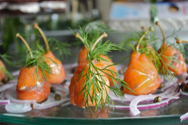 Makes 24 Smoked Salmon Pears This creation is an ode to the incredible Smoked Pacific Canadian Salmon and is delicious eaten with the garnish or just a good two bites on its own.