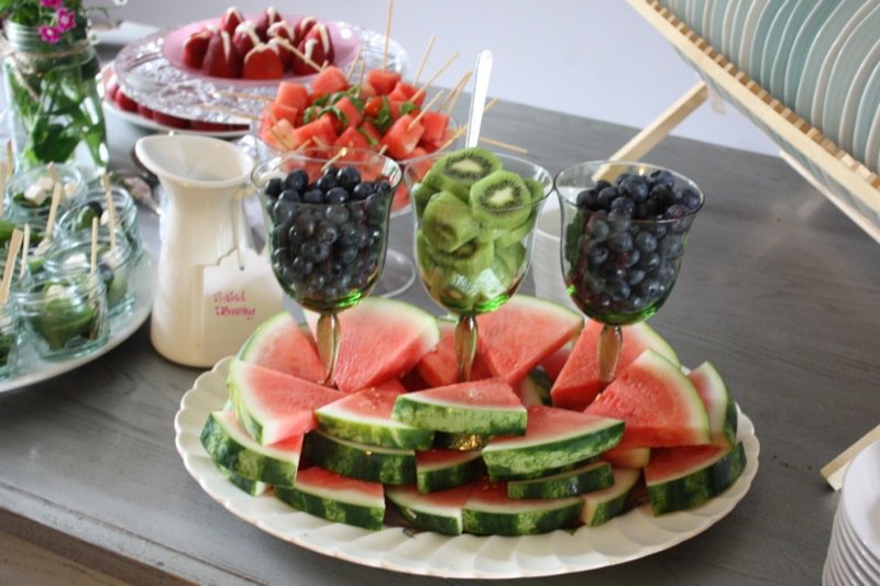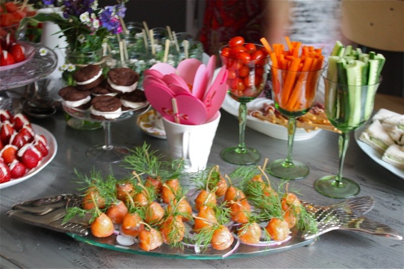 The gals had been busy. The table looked divine. The stuffed strawberries were nummy as wer all the fresh fruit and veggies.