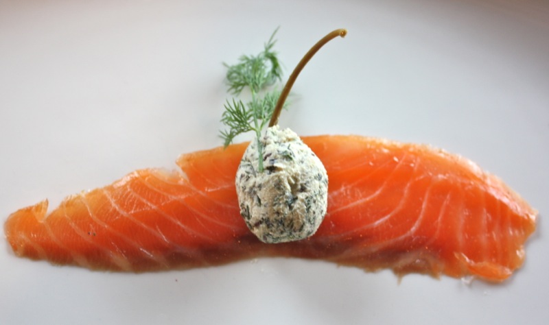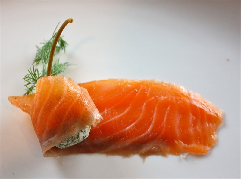 Smoked Salmon Pears: Caperberry, Homemade Boursin and Dill