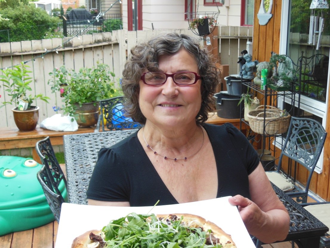 Marilyn at Here and There from Calgary, Alberta, visited the MacKillop Farm to see their Highland cattle; Renee MacKillop proudly showed the family farm and talked about direct marketing of their product. Keeping the Highland cattle on a grass feed regimen leads to a more natural beef product. The beef is superior in taste, tenderness and cooking. To show case this meat, Marilyn created a homemade pizza topped with caramelized onions, ground highland beef, cheeses , and garnished with truffle oil and arugula. It is farmers like these that are regional Canadian food heroes. Preserving heritage breeds and ensuring they are grass fed is not cost effective. It takes passion, perseverance and an intense focus to work toward a better and more divergent agricultural future for Alberta.