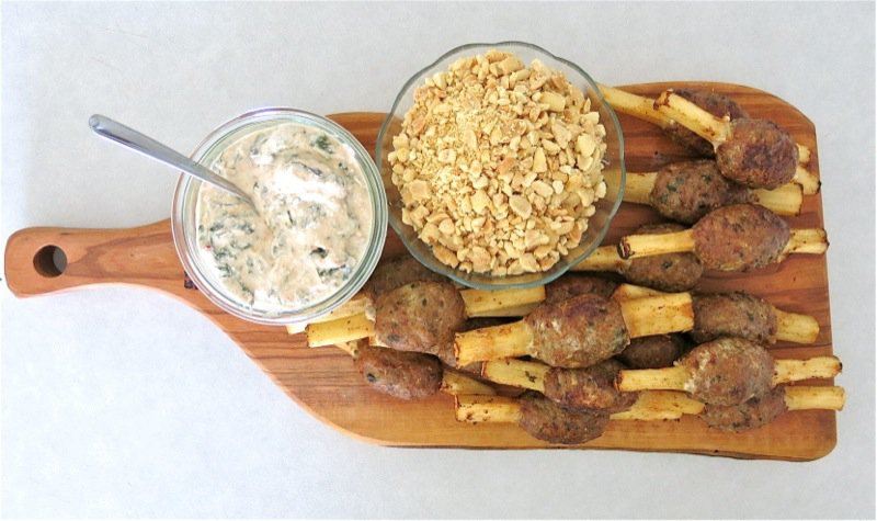 Vietnamese Turkey Meatballs on Skewers with Peanut Coconut Dipping Sauce