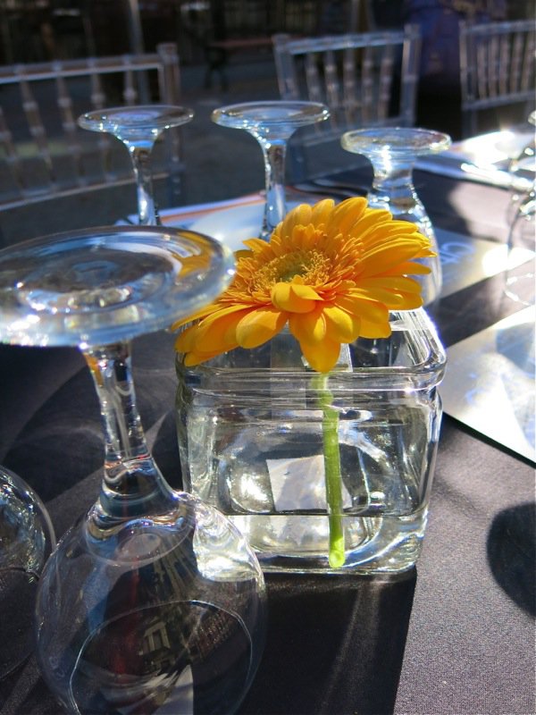 There’s always someone at the end of the evening who gathers up the center pieces and snorffles them off home. At the end of this evening, one was a very tall, stunningly gorgeous, long blond haired leggy beauty, burgeoning bouquet in hand as her handsome group of suitors gathered remaining Gerbers as she strolled in smooth long-legged strides toward her taxi on the corner of Stephen Avenue and Centre Street. (Volunteers like Gerbers, too.)