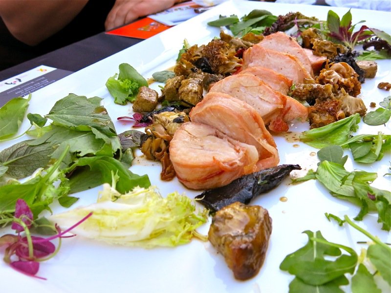 And the third course, served as our fourth: Oven Roasted Bacon Wrapped Veal Sweetbreads with Madiera Glazed Wild Mushrooms from The Belvedere. This course was not for every one. I have had the most surreal sweetbreads at The French Laundry, and at The Hardware Grill in Edmonton, so was actually looking forward to this course. It was a risky choice for The Belvedere. The mushrooms were deadly delicious. Sadly, the texture of the sweetbreads was too spongy to even grasp the flavour. It was that off putting and this was the one plate that was not cleaned by most.