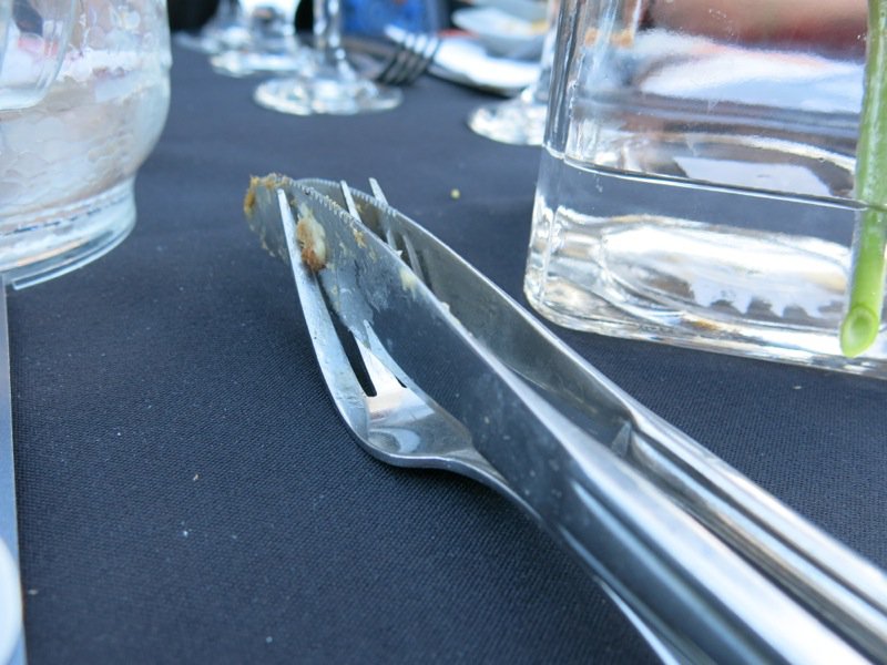 A little tip for saving cutlery and not soiling the table cloth too much. As the sun goes down the comradery of the guests heightens down the long table, and “The Wave” finds its way to the middle of the table, unbeknownst to those of us at the other end.