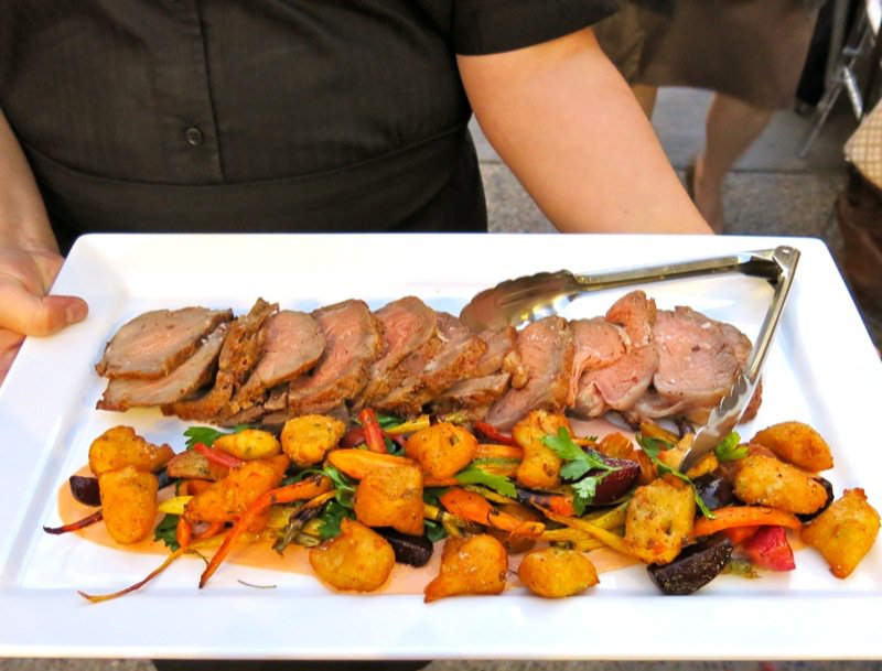 Alberta Beef. No important Alberta meal would be complete without it. Slow Roasted Alberta Beef Ribeye with Poplar Bluff Potato Lorette, Okanagan Heirloom Carrots and Beets with Roasted Pepper Aioli all from Divino (Chef John Donovan). And what is a potato lorette, you may ask, as we did. Our instantaneous iphone research told us that these are a mashed potato batter made in a very similar fashion to choux pastry and then deep fried. All I can say is eyeballs were rolling all over after one bite of this crisp, dreamy velvet textured wonder. The beef was seasoned perfectly, fragrant, so flavourful and warm and as it moaned “Alberta”. Oh, my. What a crescendo. The vegetables and aoili were equally as bold. There was no background singer in this ensemble. Each bite was a burst of the bounty of our prairie harvest. Standing ovation, Divino!