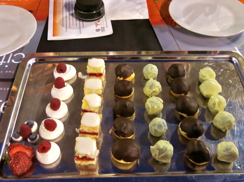 Teatro is apparently famous for their desserts (Pastry Chef Gary Dong). After all that food, who needs it? I do! I do! How I love one (or two) sweet bites after a savoury feast. The platter didn’t offer each guest one of each of the four bites and they were bites. Of course, I just happened to acquire one of each “for the photo”.