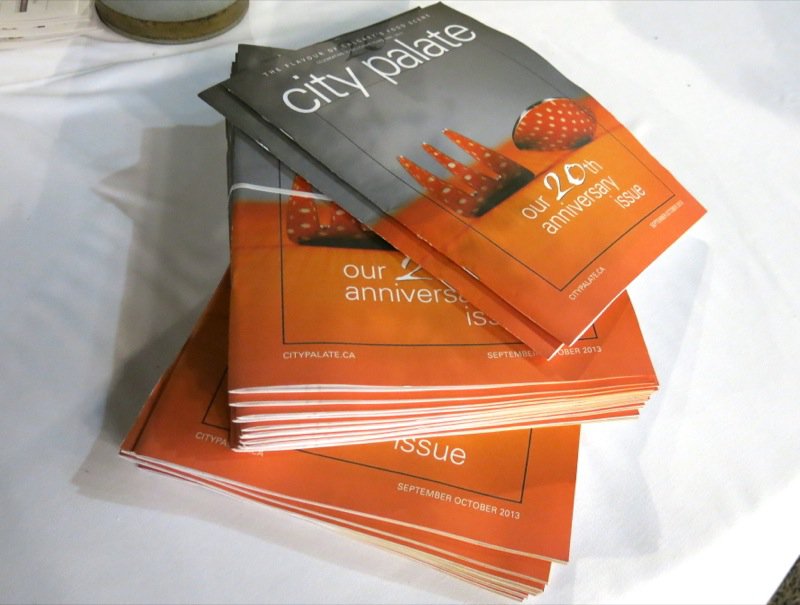 Gail Norton, below left, is one of the grand mavens of Calgary’s thriving local food scene as she started her Cookbook Store in Calgary, The Cookbook Co., 30 years ago, in 1984, upstairs in a building on 17th Avenue SW, then came to publish her iconic local food magazine, the City Palate in 1993. I have been a fan since the very early days due to my good friend, Rae Wyshynski, taking me there is the early days to sample the Saturday morning goodies Gail would prepare from the latest cookbooks on sale. The name was changed to The Cookbook Co. Cooks when they moved to their current location and offered cooking classes. Last Monday was not the culmination of the 20th year the magazine has been in publication, it was only one of 20 events planned by Gail and team for her year long party. And, oh, what a night it was. It really was.