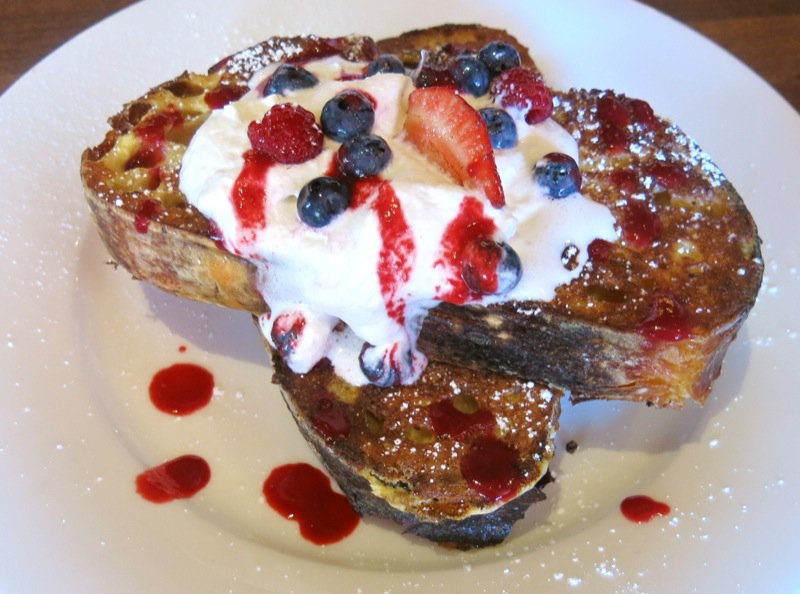 This is a bread you can sink your teeth into and chew. It doesn’t dissolve on your tongue. This is a bread that pushes back and plays with you a little which is an unexpected pleasure that one usually only experiences when eating homemade french toast – at home. This is a satisfying, not sweet, very healthy tasting dish that is definitely that one item on the menu sure to please all.