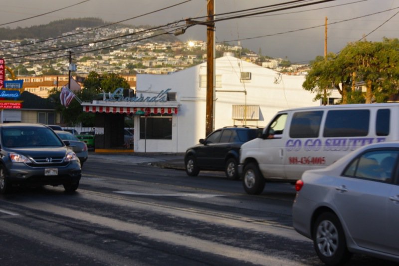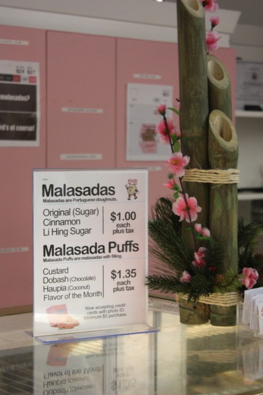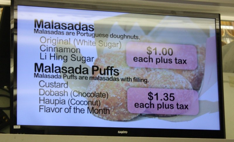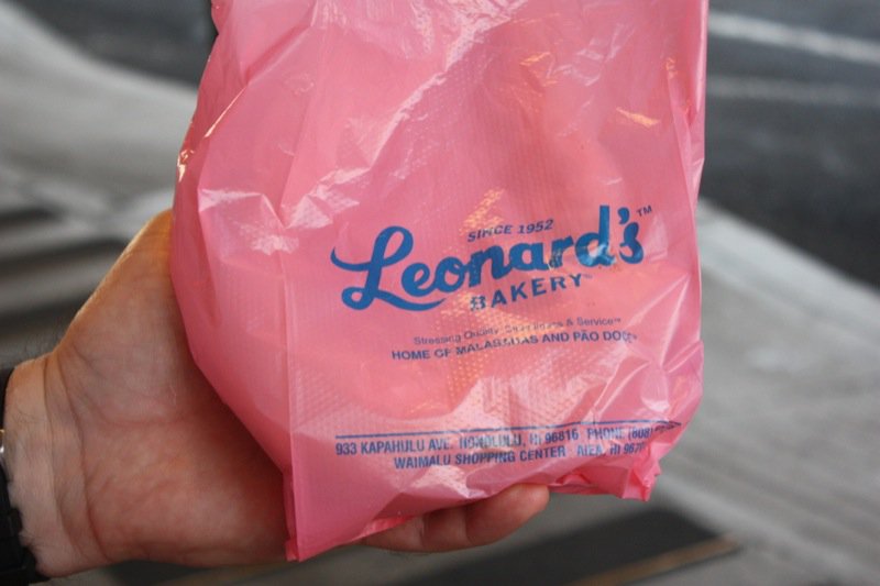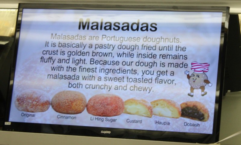 Can you see the Leonard’s sign? It is a very 50’s looking, which is part of its charm. So why were we looking? Someone said: You MUST go to Leonard’s for a malasada if you are in Honolulu and interested in the food culture. That is all you have to say to me. Thank God, Vanja, is such a wonderful accommodator and so much fun to be with. Leonard and Margaret opened this Bakery in 1952, and not long after opening, Leonard’s mother, who had immigrated from Portugal in 1882 with her parents, suggested making malasadas for Shrove Tuesday which was a Portuguese tradition. They were worried would be too ethnic an offering, but the malasadas were a huge hit and, the addictive cravings for malasadas in Hawaii was born.