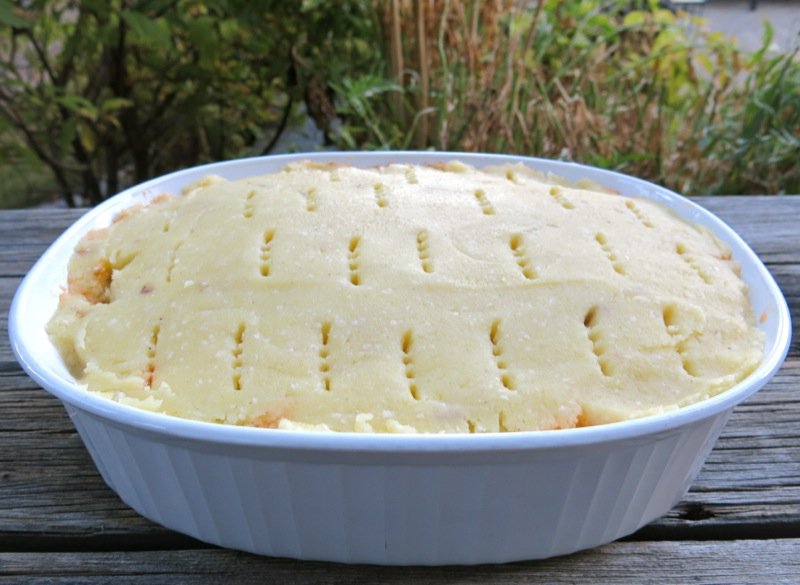The red peppers, mushrooms and zucchini threw me. Not traditional at all. I grew up with hburg, creamed style corn and mashed potatoes. Some diced onion in the meat, cinnamon, then it was layered. Since I had always known it as pate chinois, I had never heard of shepard’s pie.