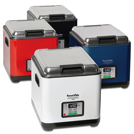 The SousVide Supreme™ is the world’s first water oven designed specifically to bring the gourmet sous vide cooking method to kitchen countertops. Sous Vide (pronounced soo-veed) means “under vacuum”, and is a culinary technique used by gourmet chefs worldwide. Based on cooking vacuum-sealed food in a water bath, the technique requires precisely controlled temperatures to produce perfectly cooked food:steak at the desired doneness from edge to edge; vibrant vegetables; juicy, tender chicken breasts; and ribs with meat falling off the bone. The SousVide Supreme’s sophisticated temperature controller – a proportional integral derivative (PID)- keeps the water bath within .5 of a degree Celsius of its ideal temperature for hours or even days, producing gourmet meals with enhanced flavours and nutritional benefits. Best of all, cooking in the SousVide Supreme is hands-off, making it easy to prepare gourmet-quality meals at the push of a button.
